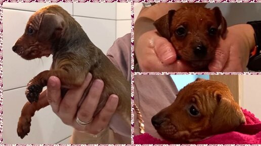 Щенкам цвергпинчера 1 месяц. Первые ванны. Маленькие помощники.