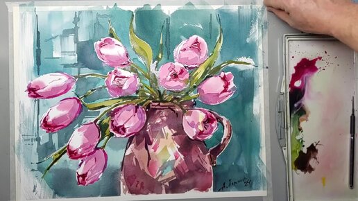 Весенний букет акварелью