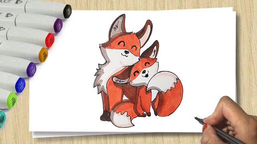 Рисуем Лису с лисенком / How to draw a fox/ Урок рисования