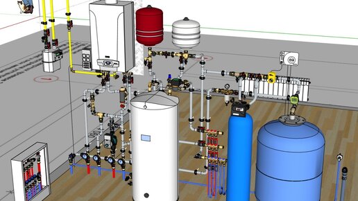 Далее: Отопление дачного дома на 90 м². SketchUp