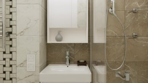 Ванная и душевая в квартире под сдачу в аренду, спокойный дизайн. в теплых тонах.