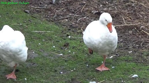Открыли ворота в маленький огород, так с трудом заманили туда гусей!