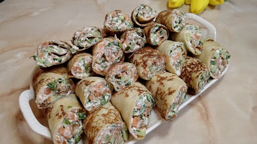 Блины с красной рыбой и творожным сыром! На любой праздничный стол!