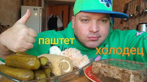 МУКБАНГ Холодец из говядины и паштет из печени/ОБЖОР соленья