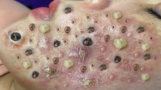 Мощные комедоны вылезают, как червяки Выдавливание прыщей и угрей #косметологя#угри
