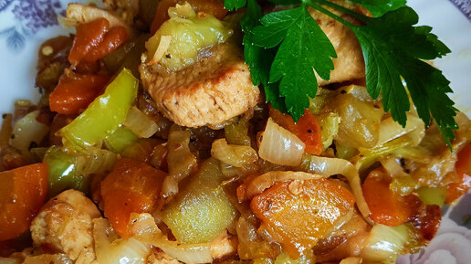 Мясо жаренное с овощами. Это блюдо съедают первым! Справится даже новичок!