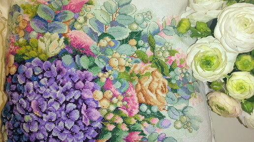Вышивка и пошив подушки гортензия. Мои подушки ручной работы.