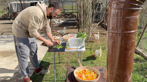 Завтрак приготовленный на уличное печи в горной деревне - самый вкусный!