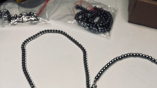 Колье с гематитом и цепью, несколько вариантов подвесок