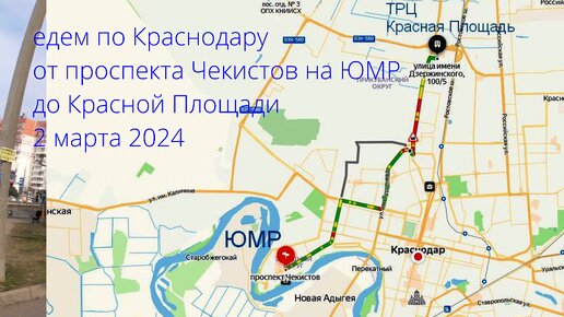 едем по Краснодару от проспекта Чекистов на ЮМР до ТРЦ Красная Площадь 2 марта 2024