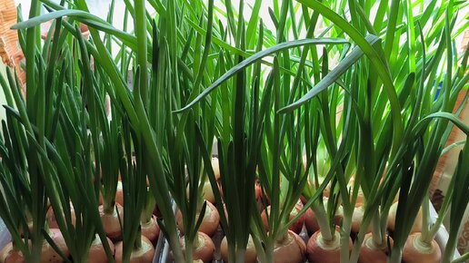 Урожай зелёного лука на подоконнике