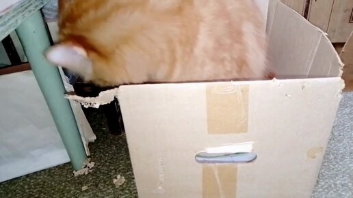 Кот забрался в коробку, а кошка хочет выжить его оттуда