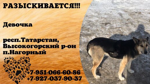 Пропала собака! Девочка. Респ.Татарстан, Высокогорный район, п.Нагорный.