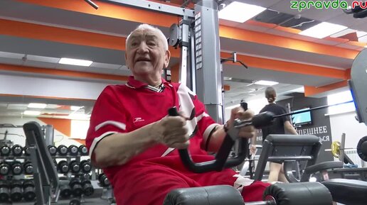 92-летний житель Зеленодольска Хафиз Шакиров занимается в «качалке» на силовых тренажерах