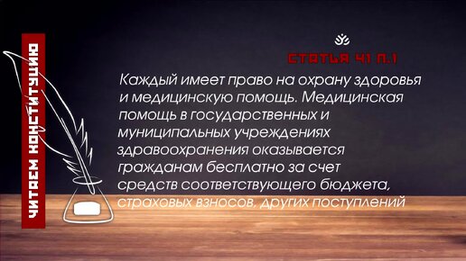 Каждый имеет право на охрану здоровья и медицинскую помощь... (Статья 41, п.1 Конституции РФ)