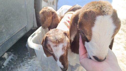Голубоглазый козлик уехал. Обезрожили малышей 🐐. Козлятки кушают.