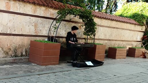 Турецкий юноша играет в Старом городе для туристов
