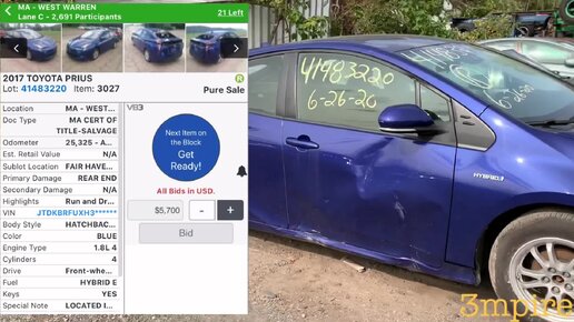 Экономичный гибрид Toyota Prius из США в Россию через порт Котка с аукциона Copart