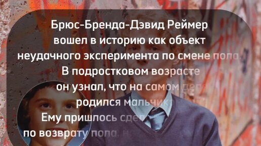 Этот ребенок вошел в историю, как объект неудачного эксперимента по смене пола. Как сложилась его жизнь?