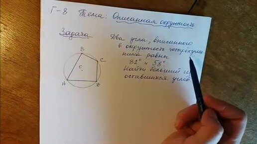 Задача на применение свойства четырёхугольника, вписанного в окружность