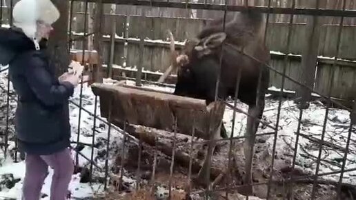 Лось Яшка в Яйве. Хозяева купили его малышом у охотников и откармливали козьим молоком. У него был огромный вольер в сосновом бору.