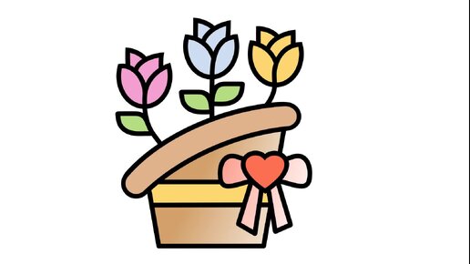 Как нарисовать корзинку с цветами \\ Мини-открытка // Простые рисунки \\ Векторное изображение // с 8 марта