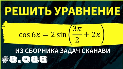 Тригонометрическое уравнение №8.086 из сборника Сканави