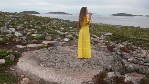 Тимина Елена - Жрица Гипербореи на Троном острове с варганом 2018 г.