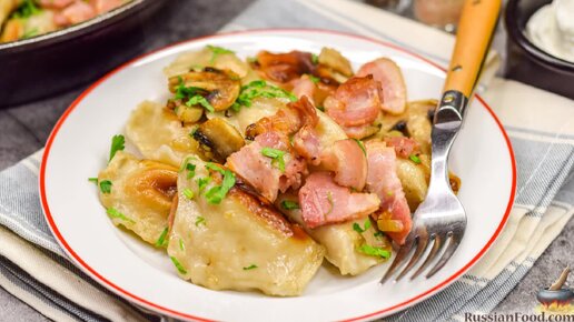 С ароматным дополнением. Вареники, жаренные с грибами