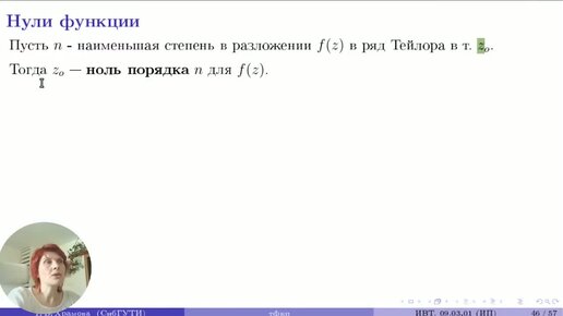Нули функции и их порядок. Теория и пример