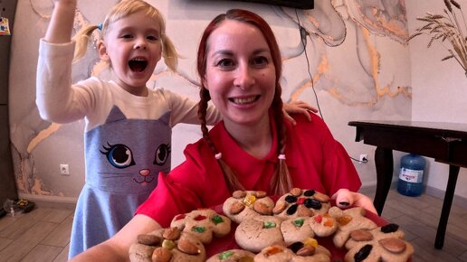 Вкусное шоколадное печенье с разноцветными шоколадными драже, цукатами, орешками либо изюмом