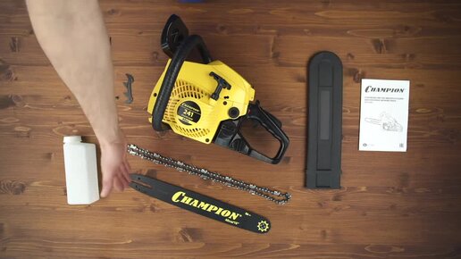 Видеоинструкция Champion_ бензопила из коробки, комплектность, подготовка