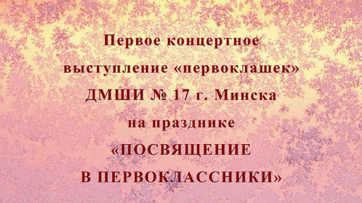 Первое концертное выступление «первоклашек» Детской музыкальной школы № 17 г. Минска на празднике «ПОСВЯЩЕНИЕ В ПЕРВОКЛАССНИКИ»