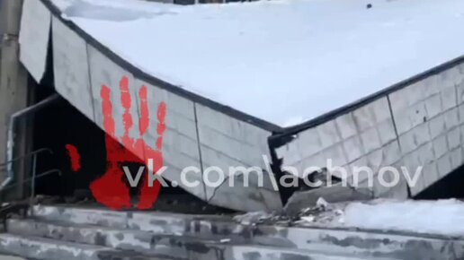 В общежитии на Салютной обвалился козырек. Видео наших репортеров