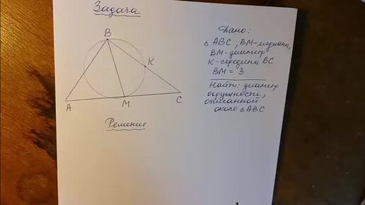 Треугольник. Медиана. Диаметр окружности, описанной около треугольника.