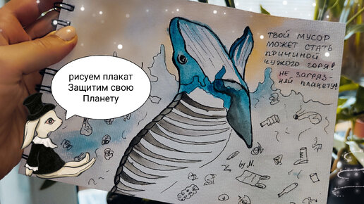 Как нарисовать Защитим свою планету по окружающему миру 4 класс. Рисуем плакат с китом, океаном и мусором
