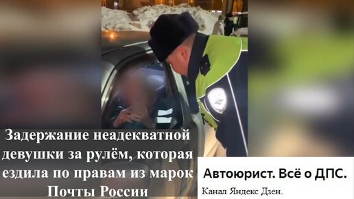 Задержание неадекватной девушки за рулём, которая ездила по правам из марок Почты России