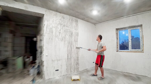 Черновая отделка. Штукатурка стен. Полы. Ванная. Дом из газобетона своими руками (Таймлапс)