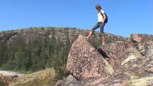Оля Курс на уступе Вороньего острова. Вид на Немецкий Кузов. Съемки экспедиции 2004 г. ©