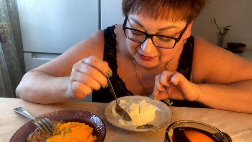 С утра погоняв кошек,я надумала пожрать😉/Что на завтрак или обед😉/А я творожку захотела😉/Уж,огурец не взяла🙈/Мукбанг