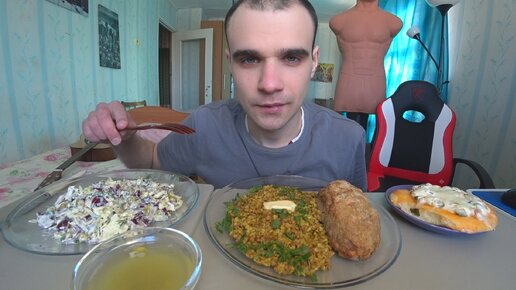 МУКБАНГ РУЛЕТ МЯСНОЙ / ГРЕЧКА / САЛАТ С ГОРОШКОМ / ПИЦЦА / ОБЖОР / EATING Mukbang ASMR АСМР