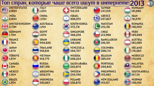 Страны, которые чаще всего ищут в Интернете