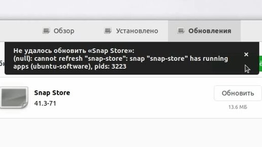 Не удалось обновить Snap Store