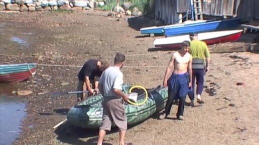 Накачивание "Зеледки" - Зеленой лодки на Соловках. Съемки экспедиции 2004 г. ©
