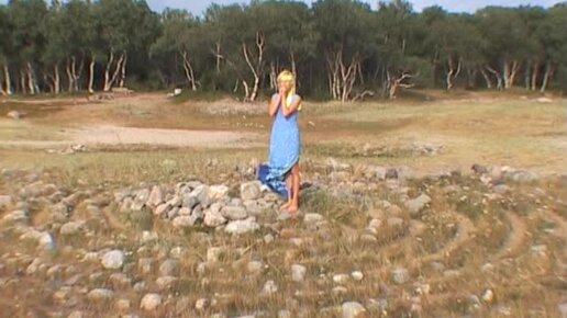 Танец жрицы Гипербореи в Большом лабиринте на Соловках. Алла Сокович. Съемки экспедиции 2004 г. ©