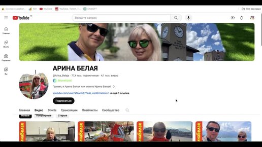 Доход Арины Белой с двух каналов на Ютубе с монетизации контента