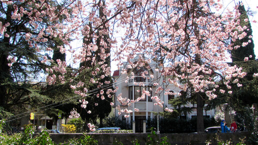 Крым, Ялта весенняя: цветущая Пушкинская улица в марте