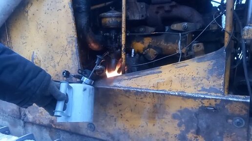 Паша жгёт бульдозер. Заварили глушитель.Компрессор-давай до свидания.