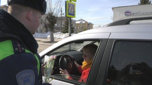 Сотрудники Госавтоинспекции Павловского Посада поздравили автолюбительниц с 8 марта