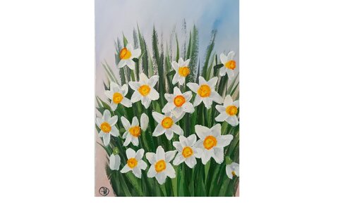 Весёлые нарциссы. Рисуем гуашью весенние цветы.